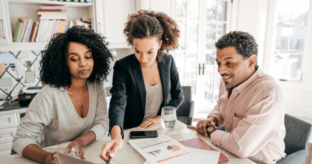 Business professionals discussing commercial loans and financing solutions in a modern office setting.